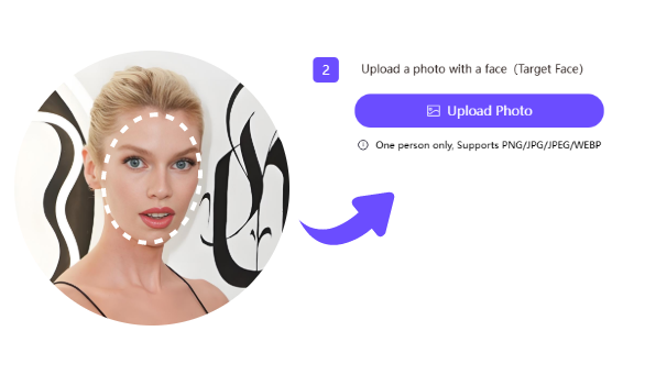 Click on the "Upload Photo" button and select the target face for your face swap video.